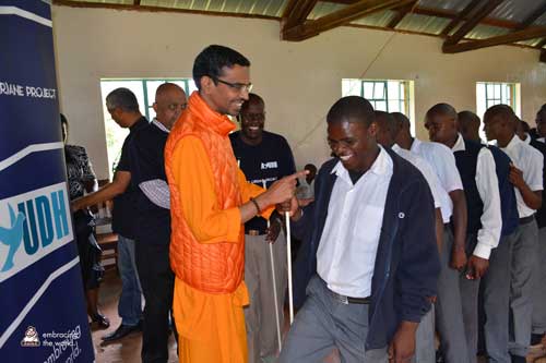 AYUDH medlemmar har kunnat samla in pengar för ytterligare 70 blindkäppar. Våra volontärer i Kenya arbetade med ”African Braille Institute” för att hitta de mest lämpade blindkäpparna av maximal kvalitet. När de hittats hölls en särskild ceremoni vid Thika skolan för synskadade april 11, 2015. Den leddes av Amma lärjunge Br. Shubamrita, som presenterade de nya käpparna.
