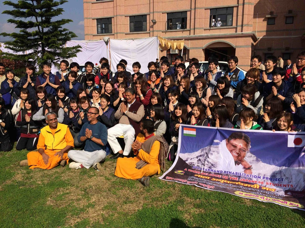 En grupp av 73 studenter från hela Japan reste till Indien för att delta i Ammas rehabilitering av de områden som drabbades av översvämningarna 2013 i delstaten Uttarakhand. Amma lovade att återuppbygga 500 bostäder i området. Första fasen av detta arbete pågår i och omkring byn Chandrapuri i distriktet Rudraprayag, på väg upp till Kedarnath.
