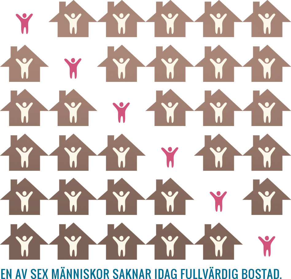 Till följd av dåligt husrum, förorenat vatten och bristfällig sanitet dör 50 000 människor - främst kvinnor och barn - varje dag. Problemet är koncentrerat till utvecklingsländer. Vi gör vår del genom att försöka tillhandahålla tak över huvudet för så många som möjligt.