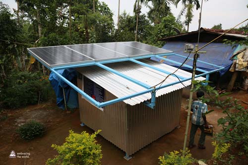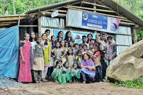 Saker och ting började att förändras när våra volontärer beslutat att anta byn under Amrita Universitys ambitiösa projekt för att skapa självständiga byar. Inledningsvis etablerade vi sex kluster av solpaneler så att 60 familjer kunde installera tre glödlampor i vart och ett av sina hus.