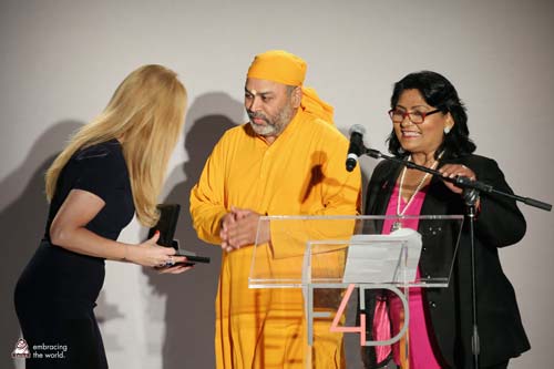 Under ceremonin betonade F4D Ammas arbete för att hjälpa fattiga människor med att få tillgång till vatten, elkraft, bostäder, sjukvård, utbildning och yrkesutbildning. Hedersmedaljen mottogs av Br. Dayamrita Chaitanya på uppdrag av Amma.