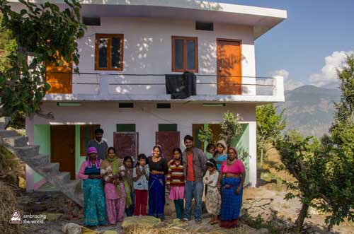 Våra frivilliga fann fem förflyttade familjer som bodde i dessa tillfälliga skydd på en brant, instabil sluttning. Vi började genast med att uppföra en byggnad med fyra lägenheter och en villa för att säkra permanenta bostäder för dem.