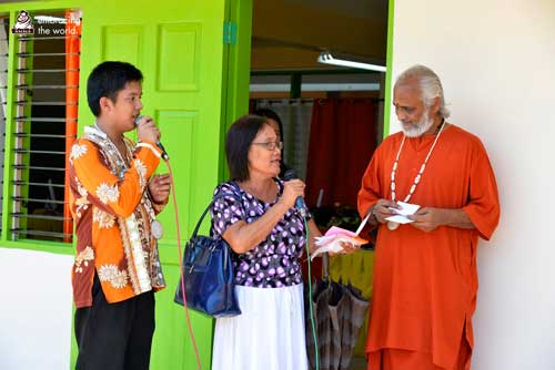 Ammas höga representant Swami Ramakrishnananda Puri reste nyligen till de drabbade områdena för att besöka och inviga en del av de genomförda projekten och för att undersöka nya möjligheter till samarbete vad gällande återuppbyggnaden av landet. Han träffade också nättidningen Mara Cepeda of Rappler, för att diskutera våra ansträngningar. Swami Ramakrishnananda Puri förklarade vår filosofi och att Ammas volontärer arbetar inspirerade av hennes outtröttliga exempel. I detta sammanhang underströk han: "Det finns människor som inte kan hjälpa andra ekonomiskt men de har talang. De kan ge av sin tid eller som Amma säger, ge några vänliga ord till den som är i nöd."