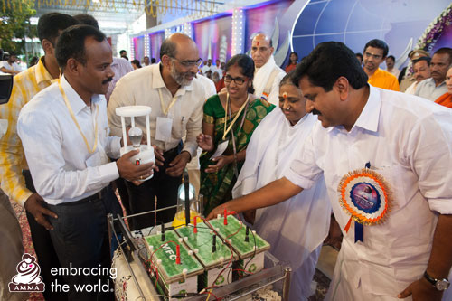 För att fira Ammas 61års födelsedag tillkännagavs en mängd innovativa lösningar för hållbar energi som utvecklats av vår eget Amrita Universitet. De bär med sig möjligheten att lösa några av Indiens mest akuta problem och förändra livet för miljontals indier som bor på landsbygden samt bidra till lägre CO2-utsläpp.