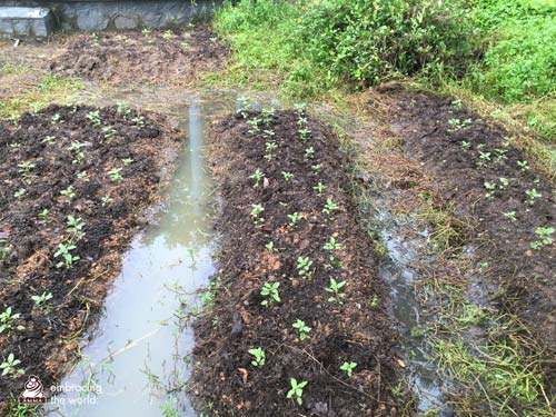 Ekologiska grönsaksodlingar poppar upp i alla hörn av vårt huvudkontor i Amritapuri efter att Amma har nämnt vikten av att undvika kemiskt behandlade livsmedel där det är möjligt. Uppe på takterrasser och nere på de smala gatorna slår de rena grönsakerna rot.
