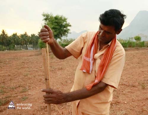 Ett annat pilotprojekt i Tamil Nadu lanserades som en del av vårt ”självständiga byar” initiativ. En bonde vid namn Jagannath arbetade med våra volontärer att fylla sin uttorkade brunn. Vi mätte konturerna i området och grävde som ett långt dike till en närliggande damm som låg uppför kullen från brunnen. Nyligen återvände vi till Jagannaths gård och var glada att se en mycket högre vattennivå i brunnen. Under den senaste regnperioden fylldes diket med överskott av vatten vilket rann till dammen och fyllde upp brunnen igen. Vi hoppas att vattennivån blir återfylld efter en eller två säsonger så att vi därefter kan plantera fruktträd längs diket, vilket skulle ge mer mat till det lokala samhället.