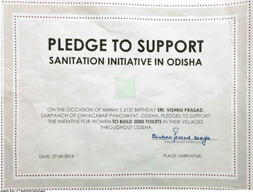 Indien har nyligen satt upp ett nationellt mål att stoppa avföring i det fria från år 2019. För att åtgärda bristen på toaletter på landsbygden erbjudander Embracing the World via Amrita Universitetet, utbildning i murverk, VVS och elsystem för kvinnor från byar på landsbygden så att de kan bygga, installera och underhålla toaletter i sina egna samhällen. Kvinnorna lär sig också om vikten av god hygien för deras personliga hälsa. De blir starkare och kan därför sprida denna kunskap och förståelse och fungera som ambassadörer för förändring till det bättre.