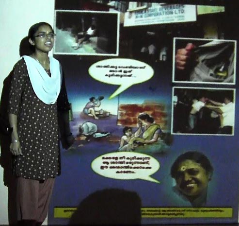 Frivilliga studenter tar itu med missbruk i Kerala, Indien